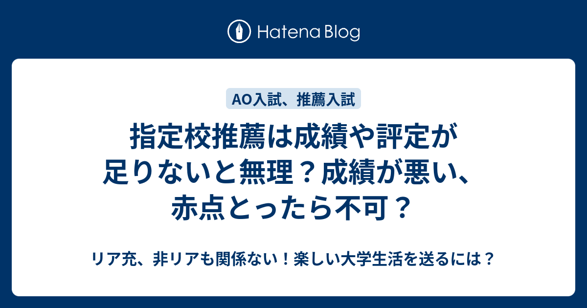 指定校推薦は成績や評定が足りないと無理 成績が悪い 赤点とったら不可 リア充 非リアも関係ない 楽しい大学生活を送るには